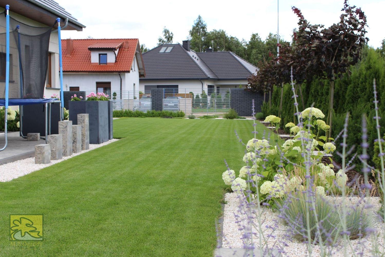 Nasza firma zrealizowała także projekt ogrodu minimalistycznego. Centrum ogrodu stanowi basen. Obok wydzieliliśmy strefę dla dzieci, gdzie znalazła się trampolina. Ogród utrzymany jest w minimalistycznym stylu, zatem jest w nim niewiele roślin, jednak każda z nich jest odpowiednio wyeksponowana. Hortensje, lawenda, jałowiec płożący i soczyście zielone trawniki z alejkami wyłożonymi szarą kostką brukową tworzą harmonijny krajobraz. Innym, poza budowaniem basenu, sposobem na otoczenie się wodą jest zaprojektowanie ogrodu z fontanną lub oczkiem wodnym.